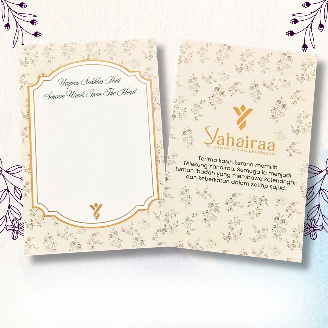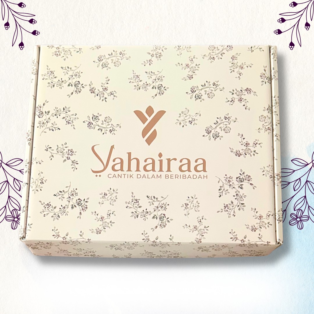 Specially designed to complement every Telekung Yahairaa purchase, this exclusive gift box features a soft floral motif that reflects elegance, serenity, and the gentle essence of ibadah