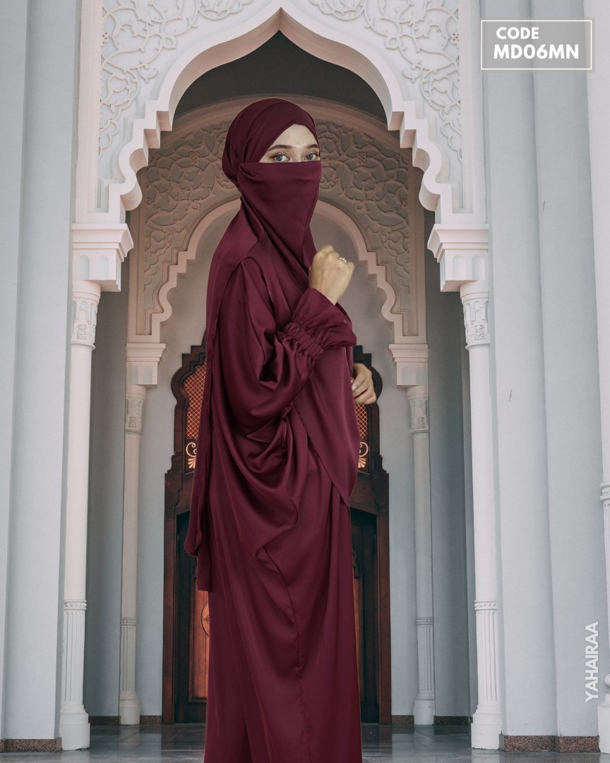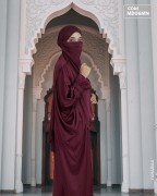 The Khimar 2-in-1 is a versatile piece of attire for Muslim women, designed to function both as a long headscarf that covers the chest and as a niqab when needed