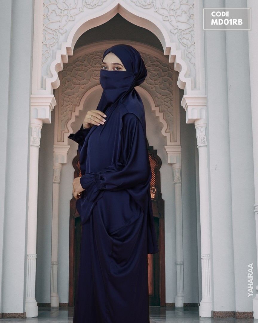 The Khimar 2-in-1 is a versatile piece of attire for Muslim women, designed to function both as a long headscarf that covers the chest and as a niqab when needed