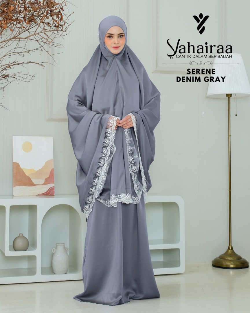 Introducing our Serene telekung series — a symbol of inner calm and timeless grace. Crafted from premium satin soft, its soft, cooling texture envelops you in comfort every time you stand for prayer.