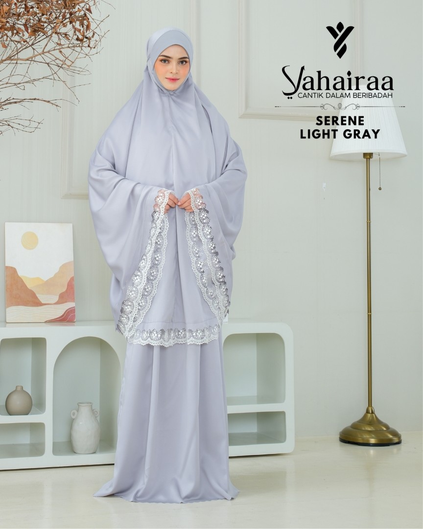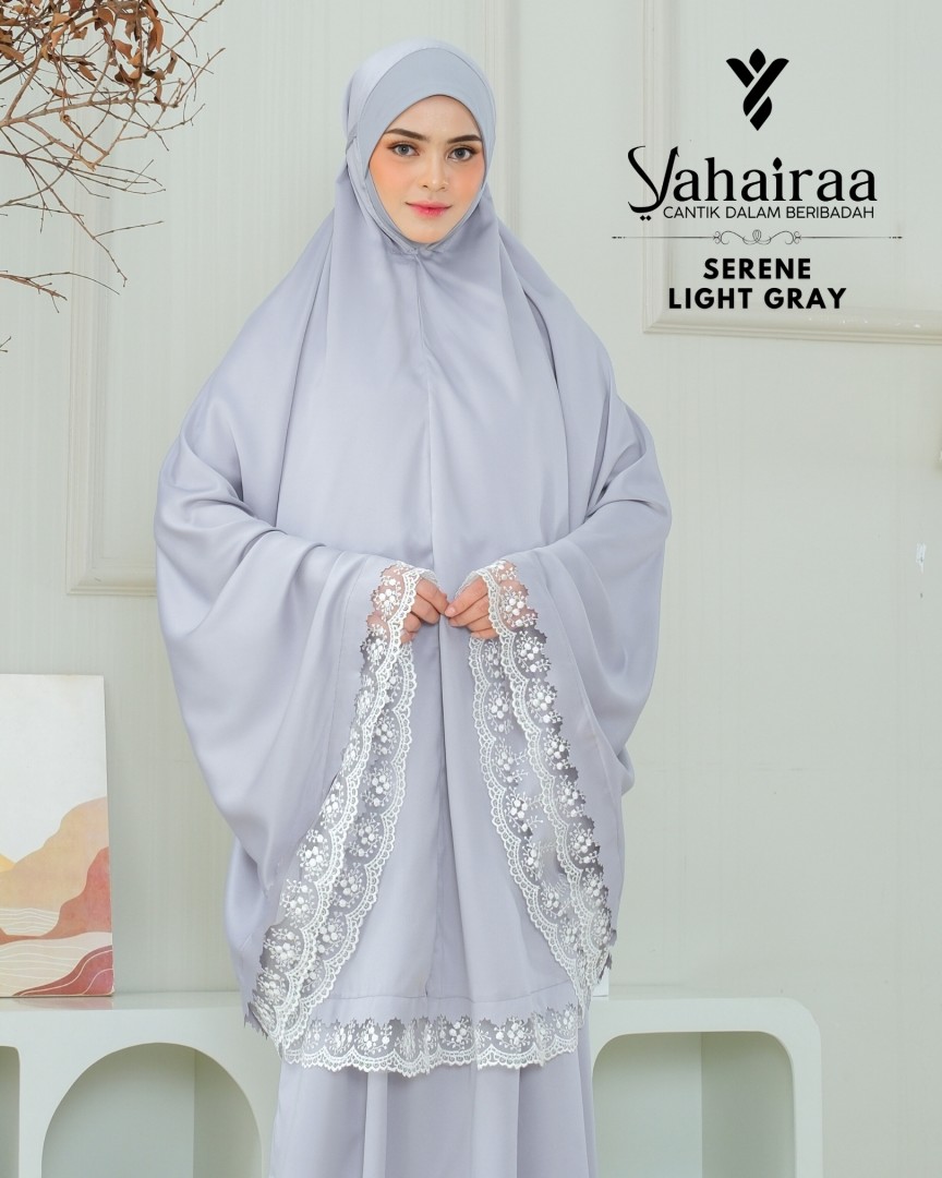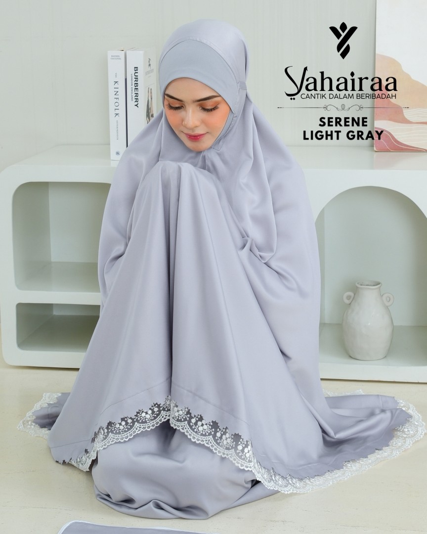 Introducing our Serene telekung series — a symbol of inner calm and timeless grace. Crafted from premium satin soft, its soft, cooling texture envelops you in comfort every time you stand for prayer.