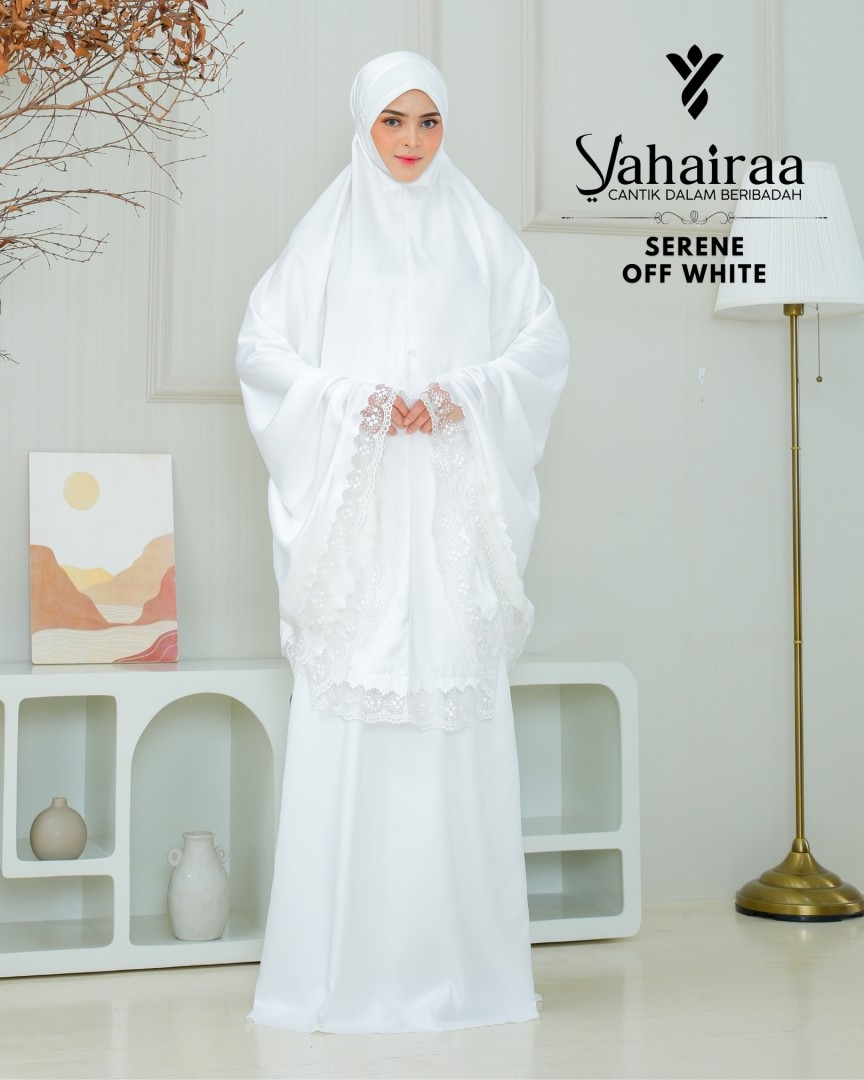 Introducing our Serene telekung series — a symbol of inner calm and timeless grace. Crafted from premium satin soft, its soft, cooling texture envelops you in comfort every time you stand for prayer.