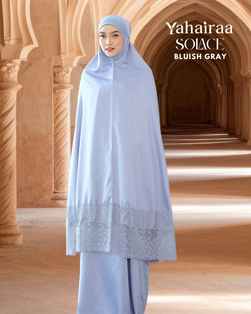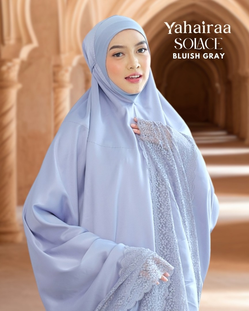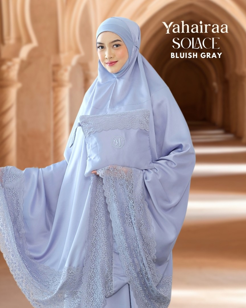 Introducing our Solace telekung series — a symbol of inner calm and timeless grace. Crafted from premium Dubai matte satin silk, its soft, cooling texture envelops you in comfort every time you stand for prayer.