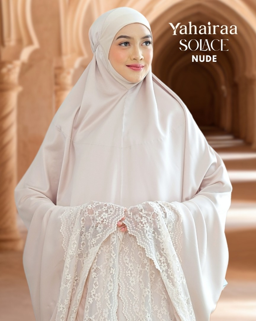 Introducing our Solace telekung series — a symbol of inner calm and timeless grace. Crafted from premium Dubai matte satin silk, its soft, cooling texture envelops you in comfort every time you stand for prayer.